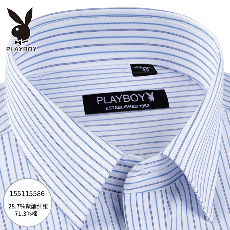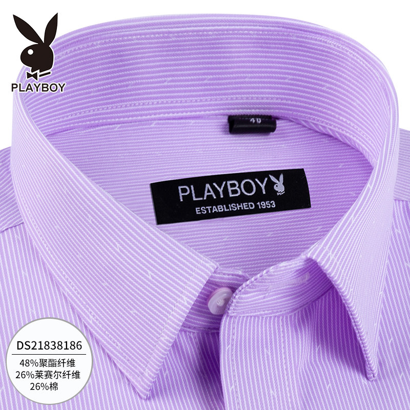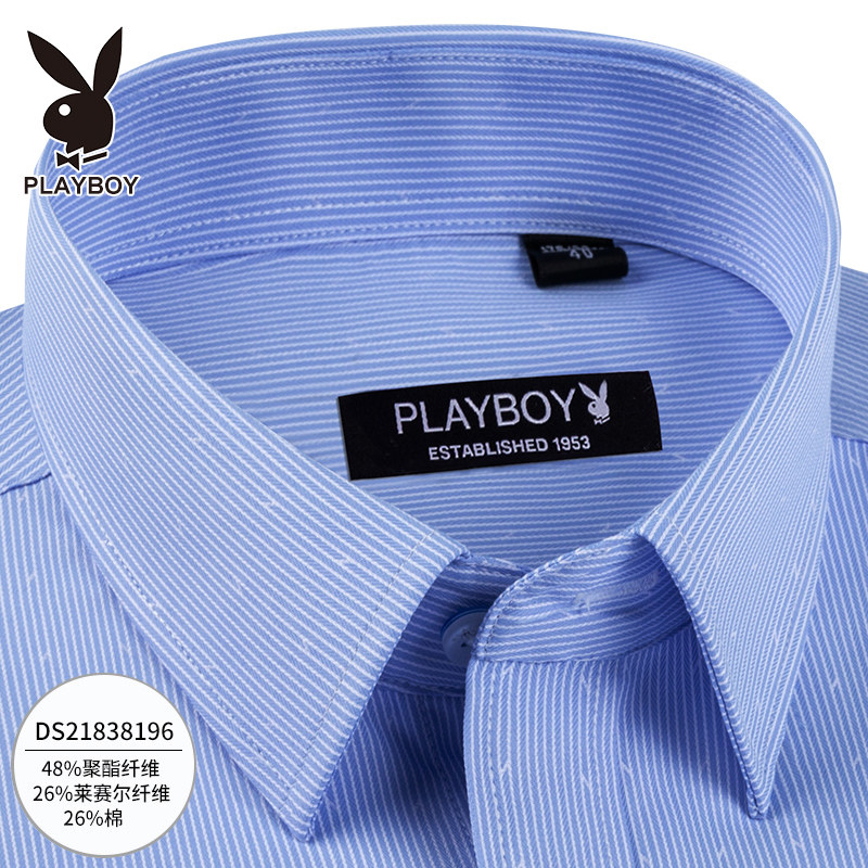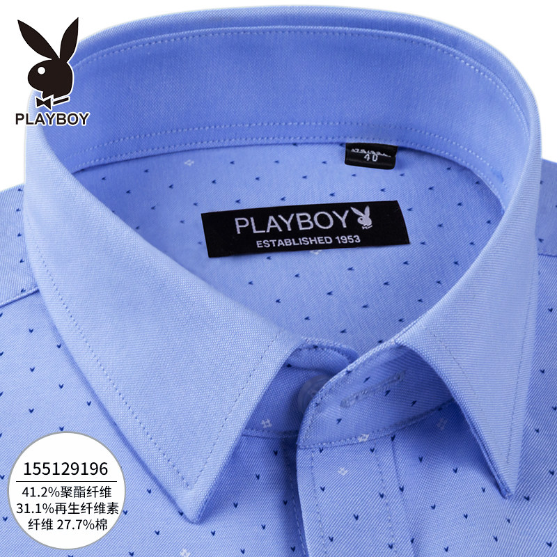 Playboy men's shirt long-sleeved printing business autumn new shirt men's middle-aged formal dress pure white shirt