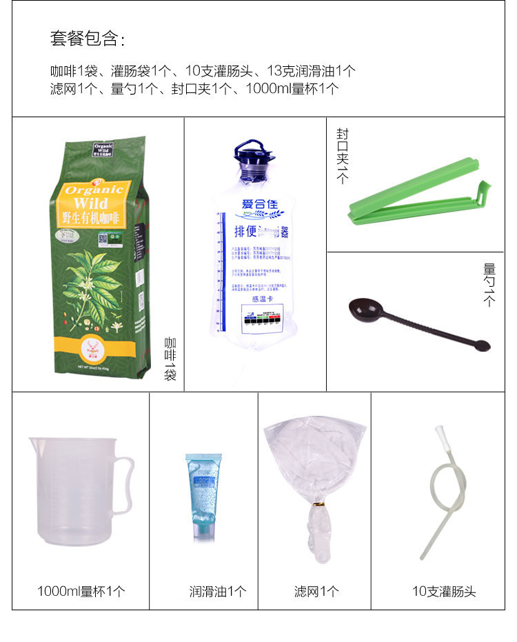 A separate bag of coffee coffee enema suit in a separate bag