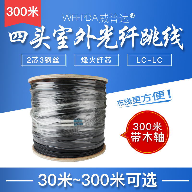 Fiber optic cable LC-LC single-mode 2-core indoor and outdoor cable Home embedded leather cable Carrier-grade fiber optic cable Home dedicated network Finished extension cable 4 heads 3 steel fiber optic jumper Weipuda