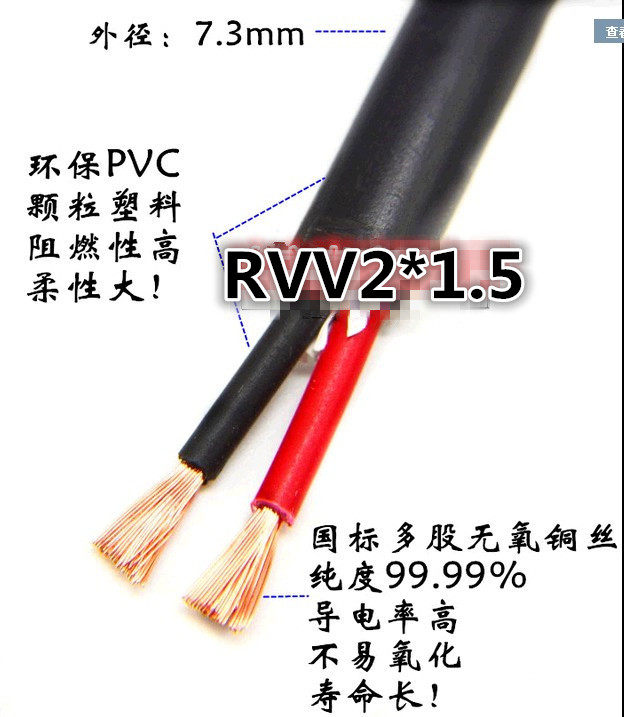 Pure copper RVV2 * 1 5 square cable wire two-core soft sheath wire power signal wire and cable monitoring line