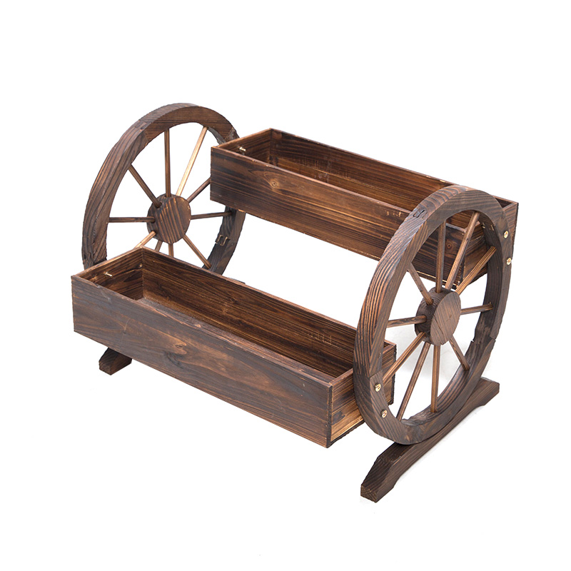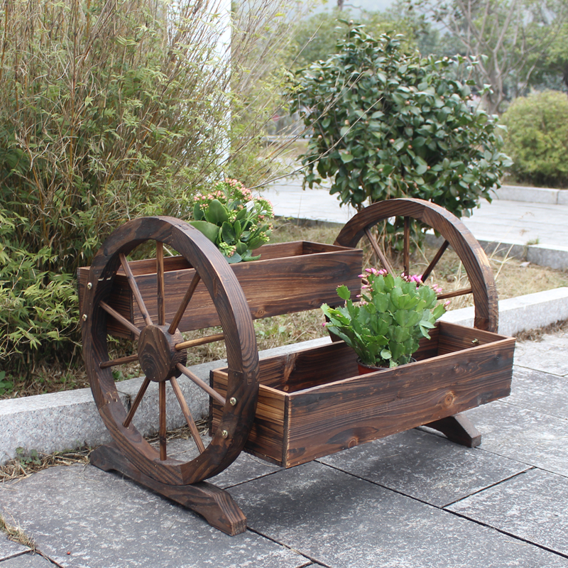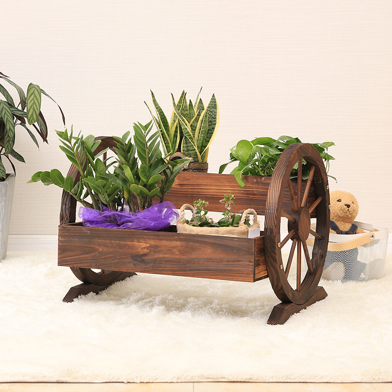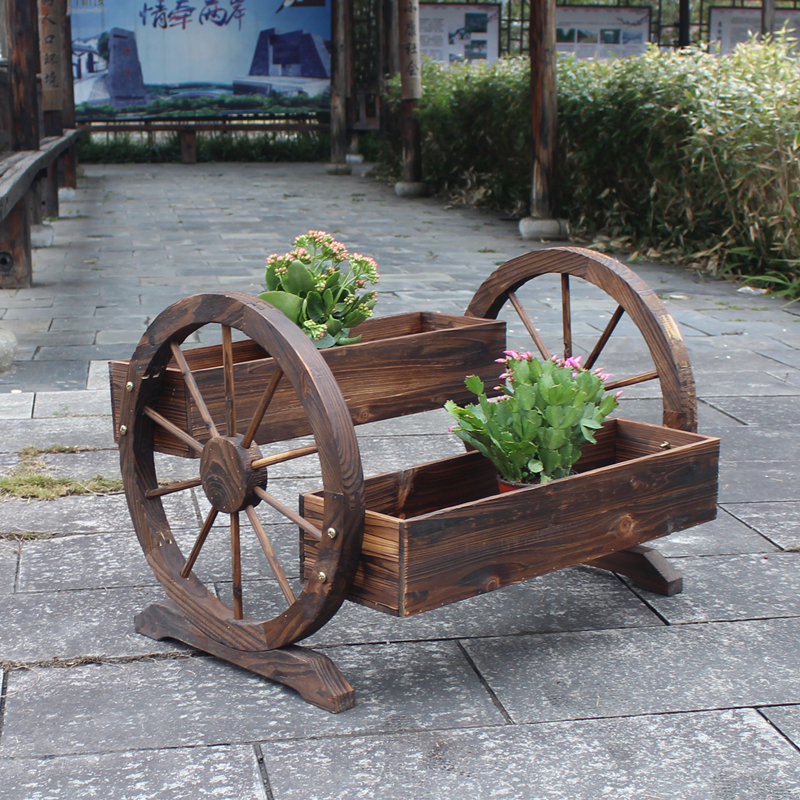 Carbonized wood flower pot antiseptic wood wheel planting box solid wood planting flower box
