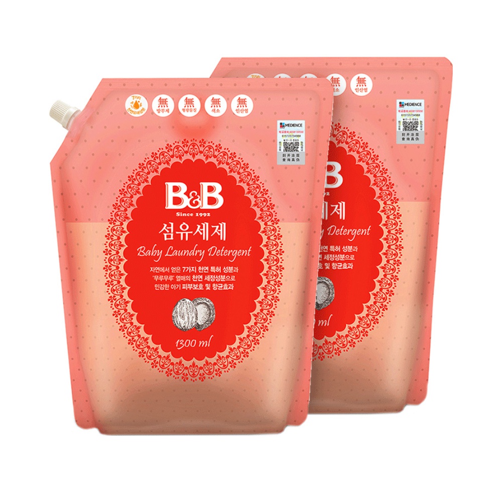 Korea imported B&B Boryeong baby laundry detergent 1.3L*2 bags newborn baby baby baby baby baby for exclusive use