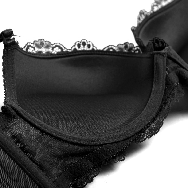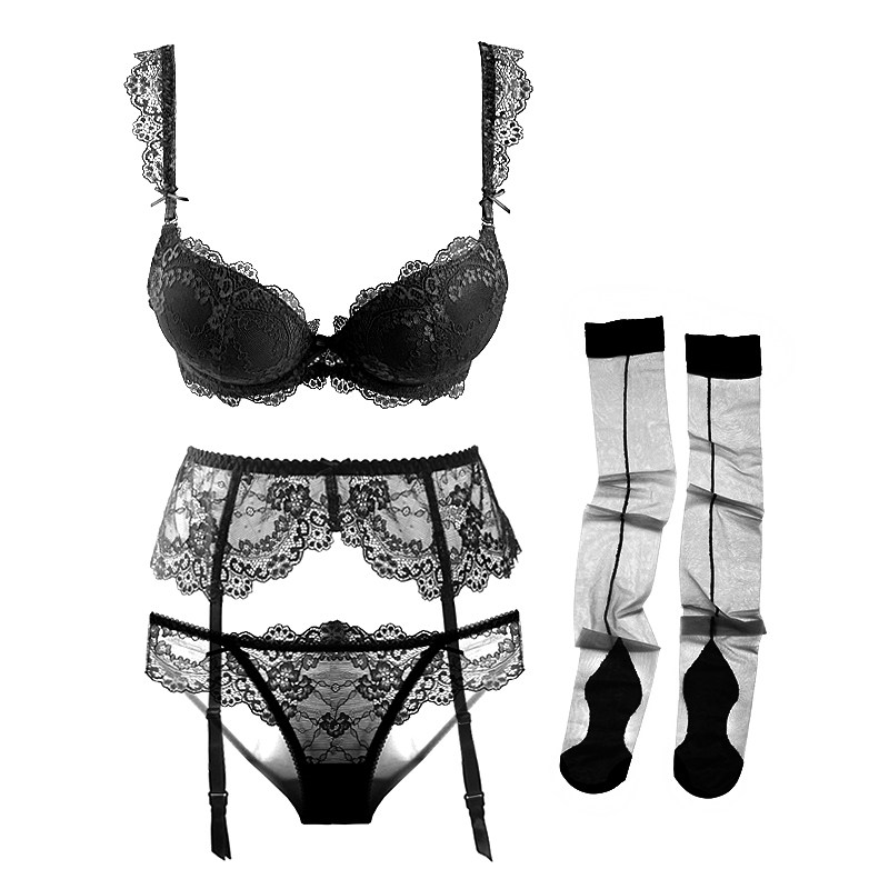 Sexy lace under thick on thin gathered underwear set(bra briefs garter stockings)
