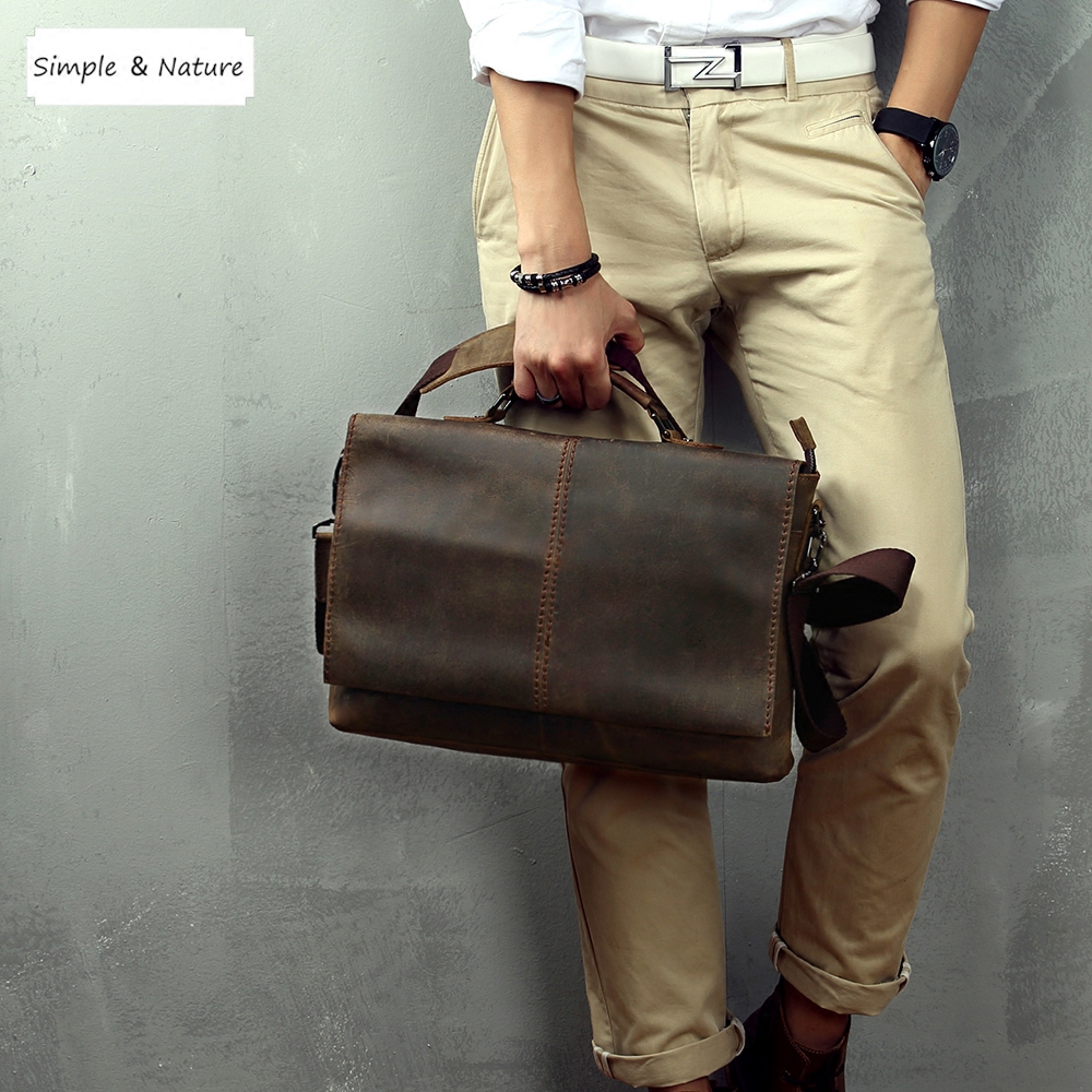 Handmade Bull Leather Retro Men's Briefcase Handbag Leather Cross Section Square Computer Bag Mad Mapi Casual Business