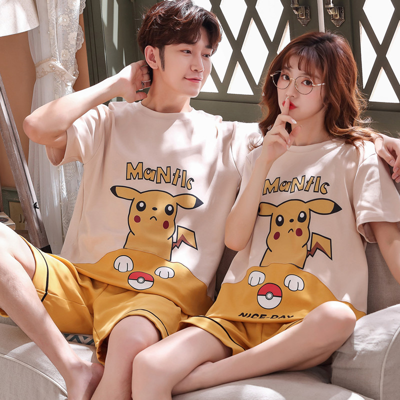 Crayon Shinchan short-sleeved couple suit 1987 short-sleeved couple suit Pikachu short-sleeved couple suit 1984 short-sleeved couple suit yarn-dyed short-sleeved couple suit