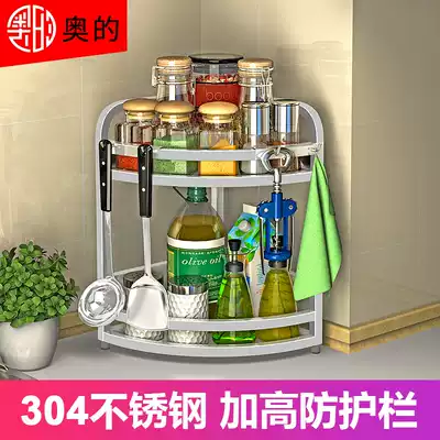 Aodi 304 stainless steel kitchen rack Wall-mounted 3-layer corner rack Seasoning seasoning tank rack seasoning triangle rack