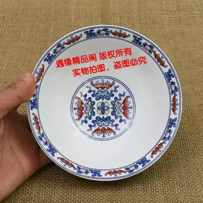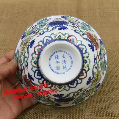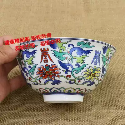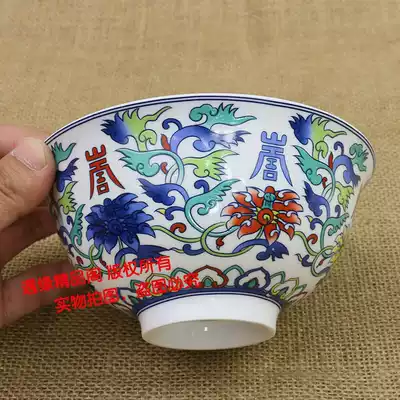 Antique Qianlong pastel blue and white birthday character Fushou porcelain bowl porcelain tea bowl art porcelain bowl