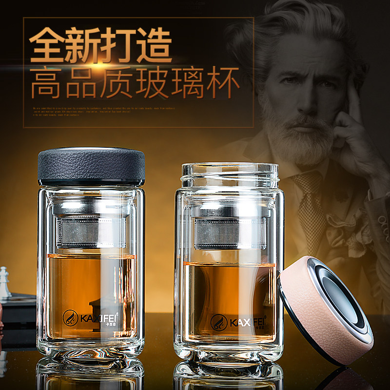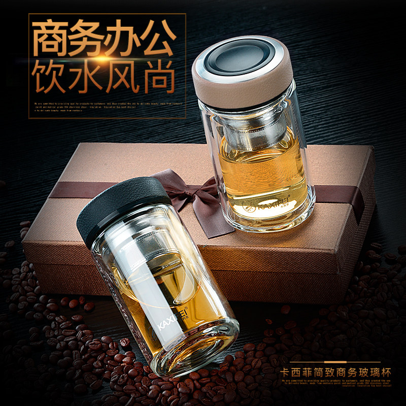 Cassifi glass double layer with lid creative with lid filter Cup portable tea cup business office