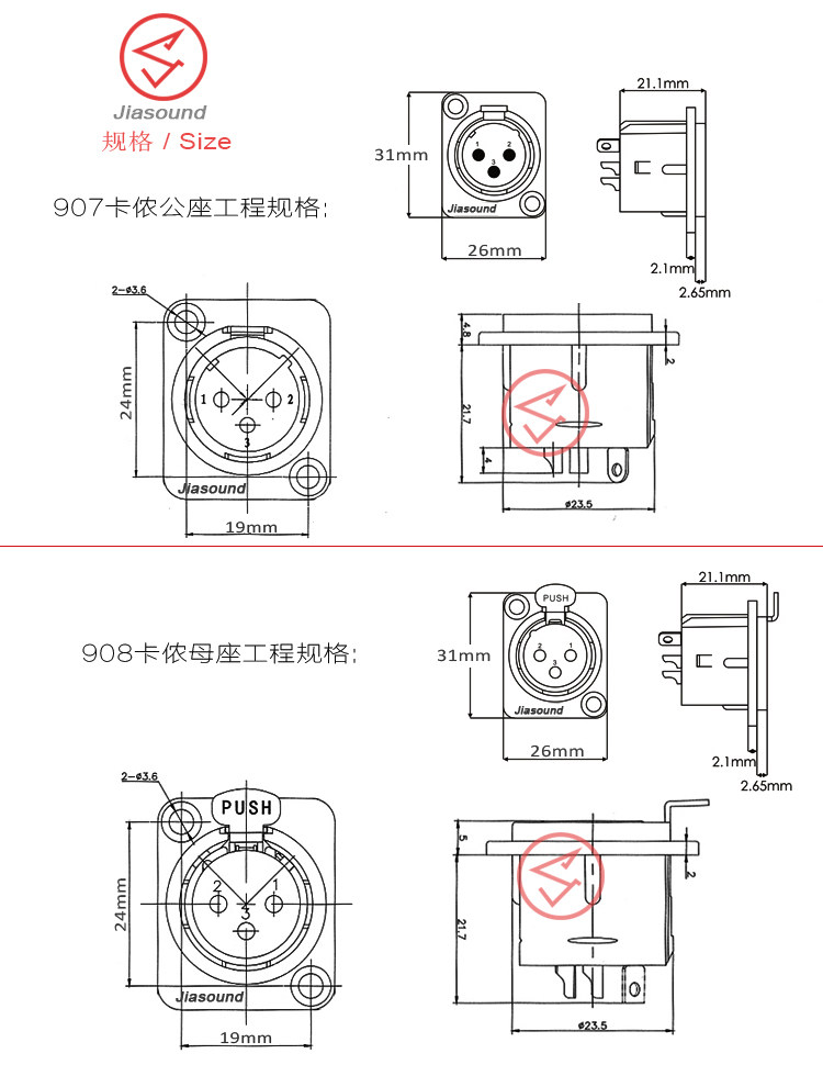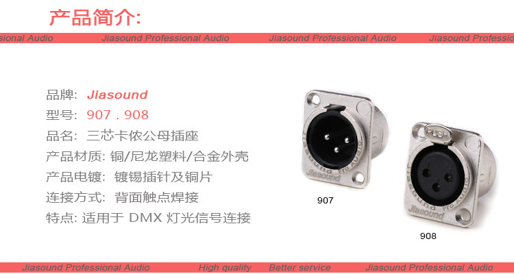 jiasound metal balance canon seat three-core XLR female socket 3-core XLR female seat high quality card dragon seat