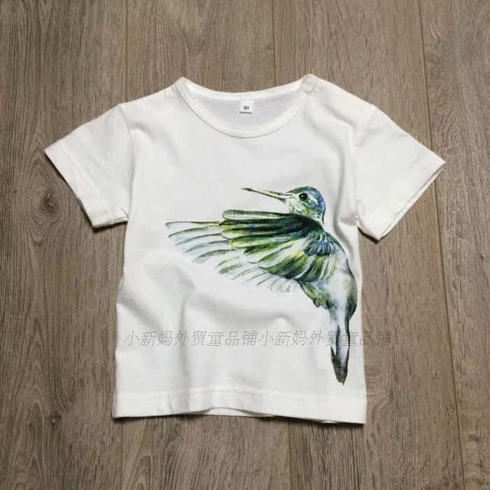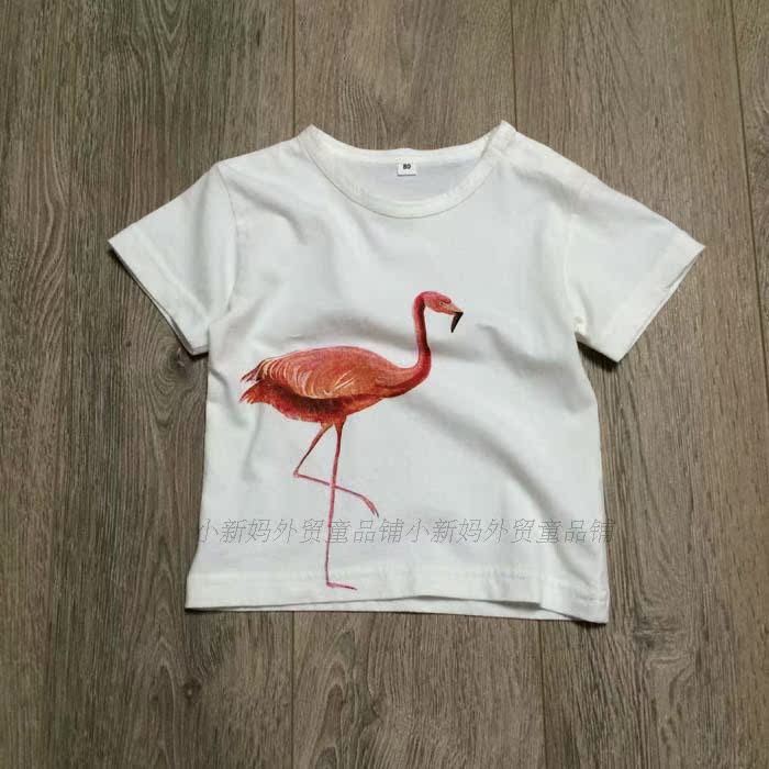 Foreign trade export organic cotton cute animal flamingos / female baby - bird pattern, short - sleeve T - shirt