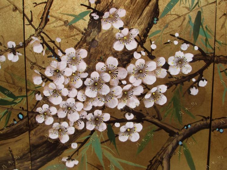 New Chinese gold foil made old hand-painted plum painting screen hotel living room seat partition TV background wall customized
