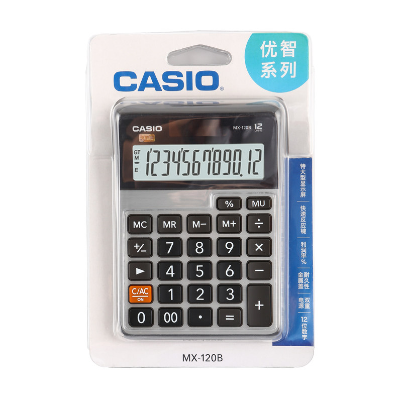 CASIOCASIOMX-120B Solar 12-digit Desktop Business Office Calculator Metal Panel