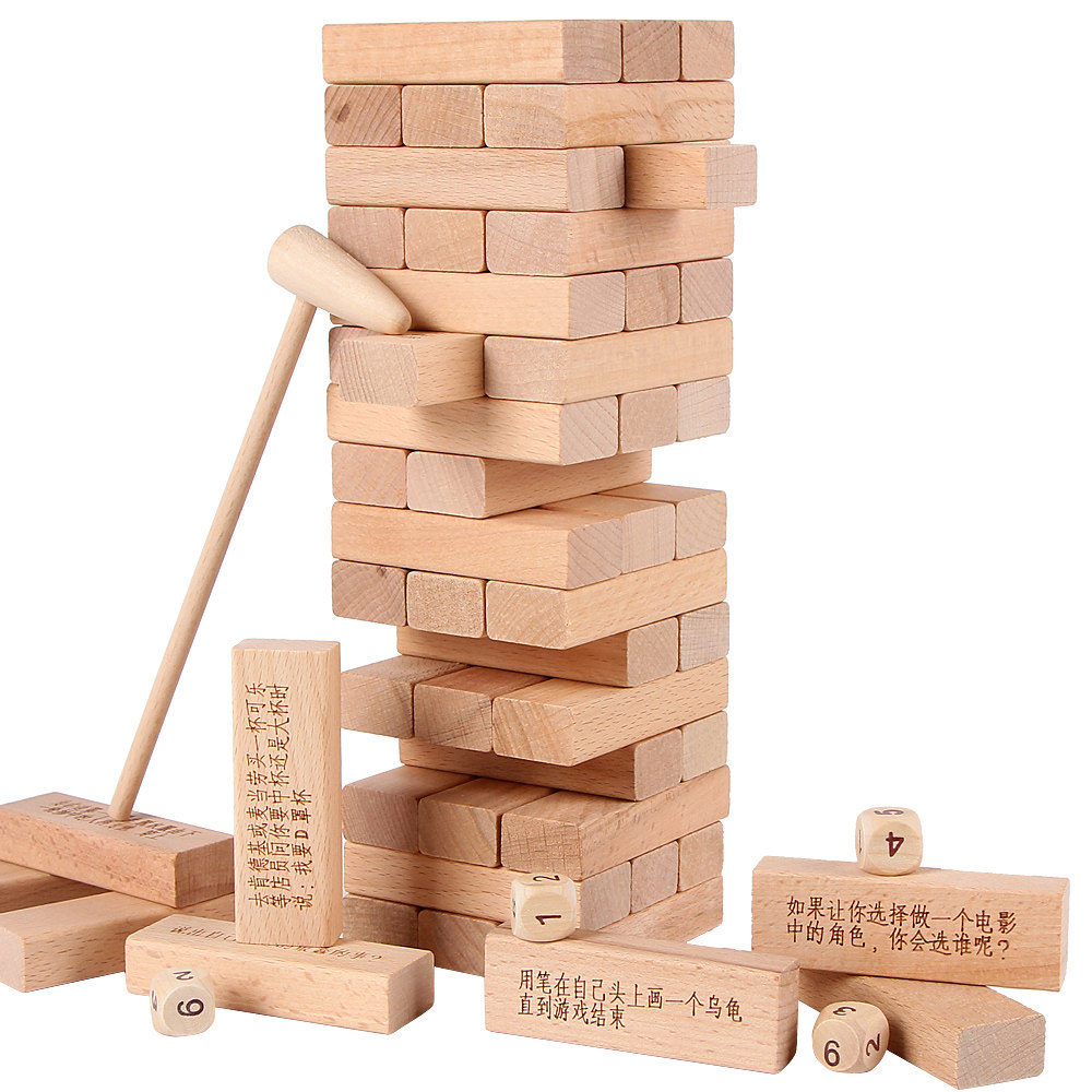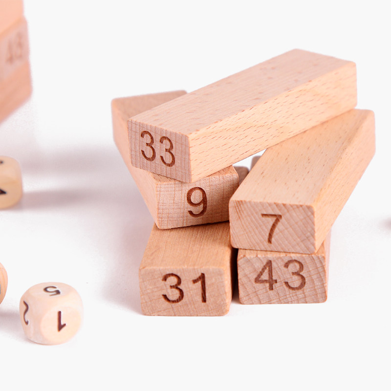 (2173 Beech version)51-piece digital stacked dice hammer storage bag 40 penalty cards (2908 children's version)54-piece Chinese character stacked dice hammer storage bag tour