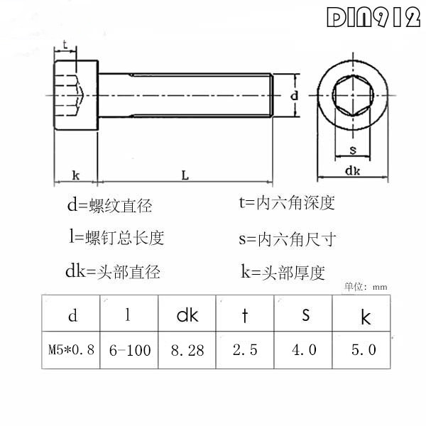 Hexagonal screws in cylindrical head (cup)