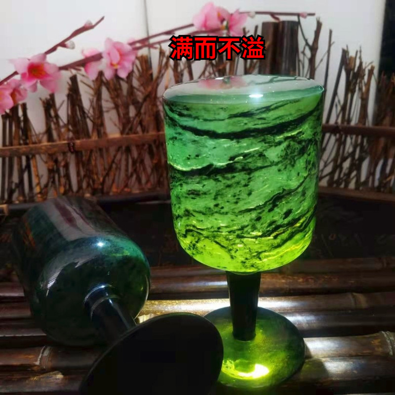 Wine Springs Night Light Cup Qi Lian Ink Jade Red Wine Glass Gansu Tesan Wushan Mandarin Jade Snake Grain Jade Fine Wine Direct Sales