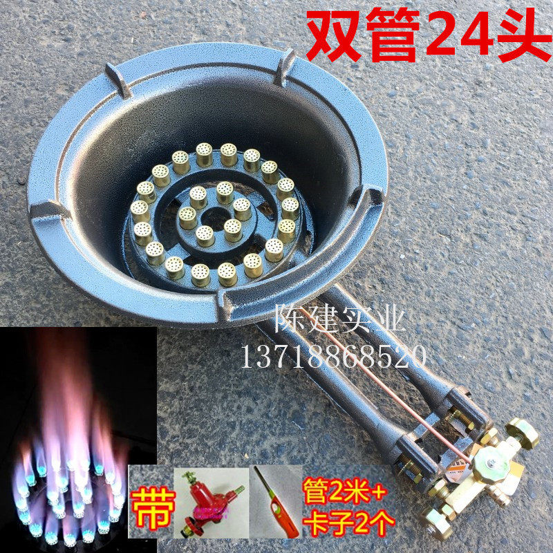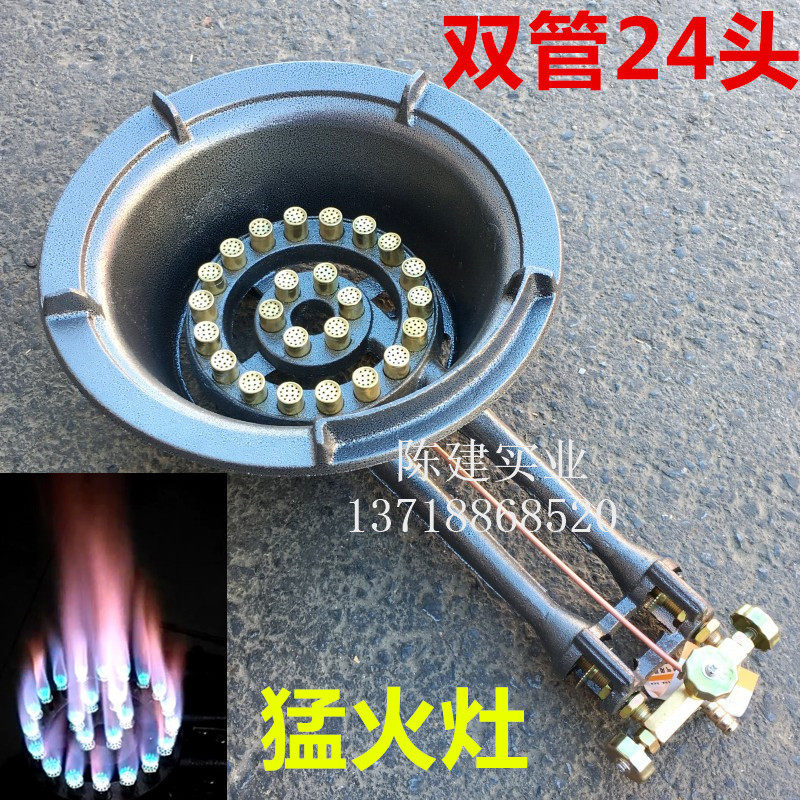 Single tube double pipe 24 head cast iron gas stove with hotel hotel commercial Mengfire gas stove head desktop gas stove tray