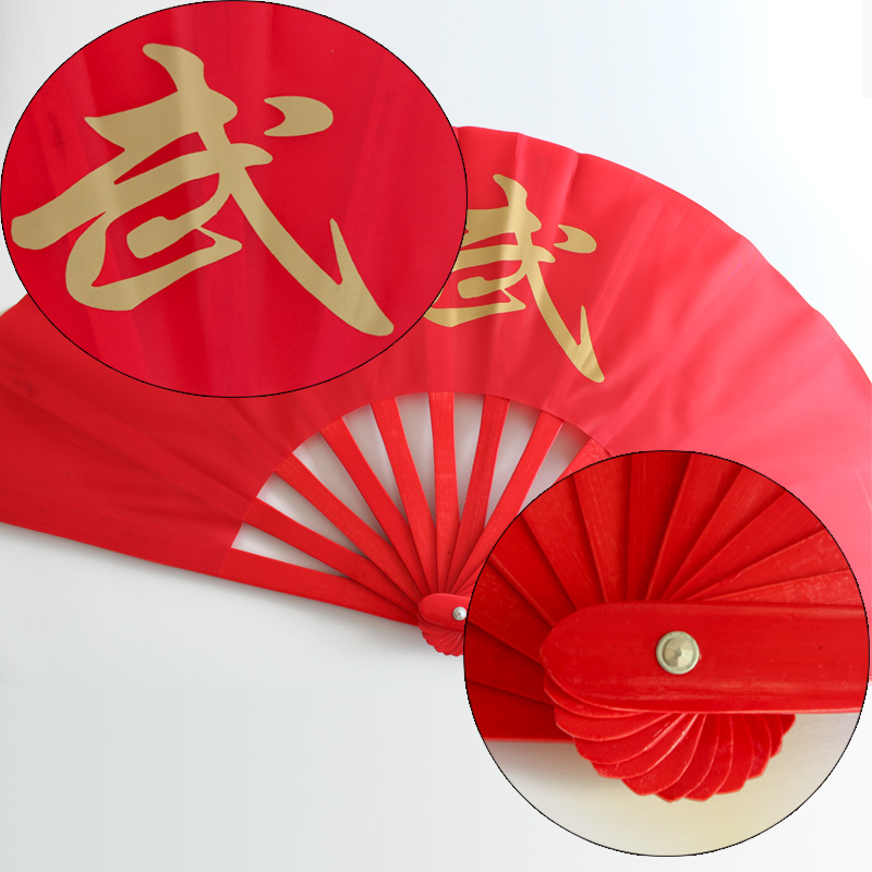 One foot golden word "Wu" right hand fan One foot two black "Wu" character right hand fan One foot black "Wu" character right hand fan One foot two red face gold word right hand fan