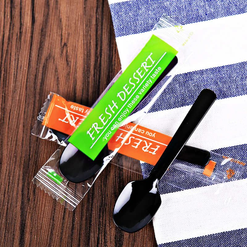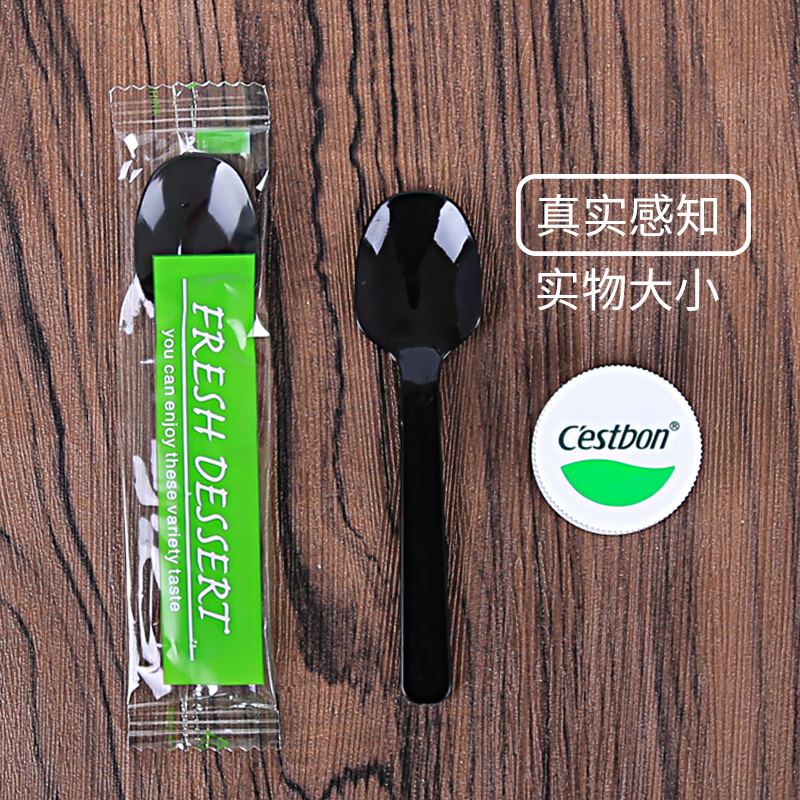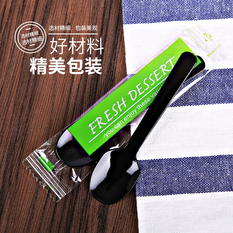 Disposable black plastic cute small spoon ice cream yogurt smoothie pudding jelly try jelly soup commercial