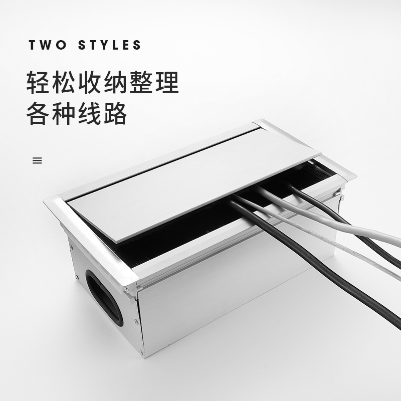 Aluminum alloy cable box with brush Cable box with cable slot Built-in socket cable hole box can be installed with 3 86 panels