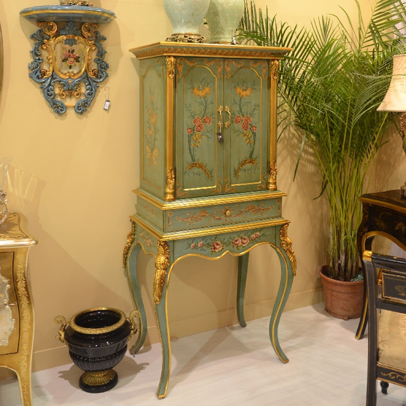 Julian Law-style European-style extravagant green Decorative Cabinet Solid Wood Multilayer Hand-painted Gold Leaf made of old high-footed cabinets