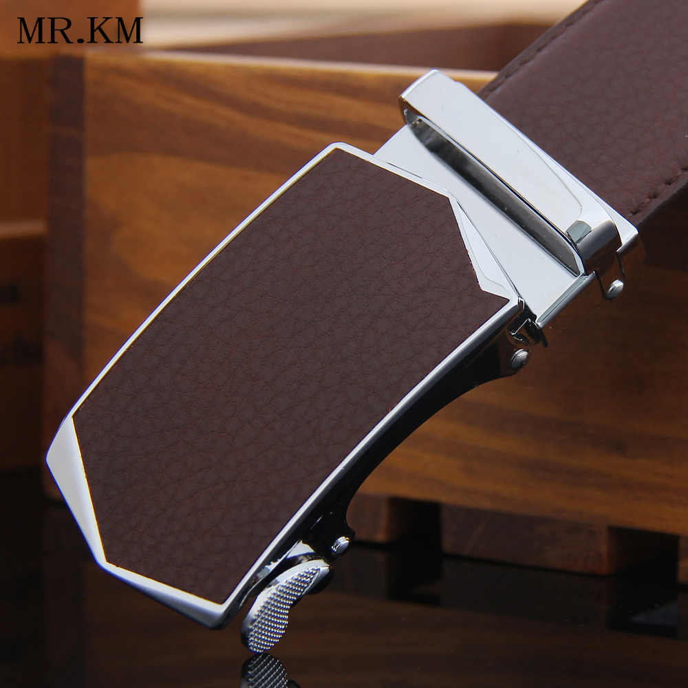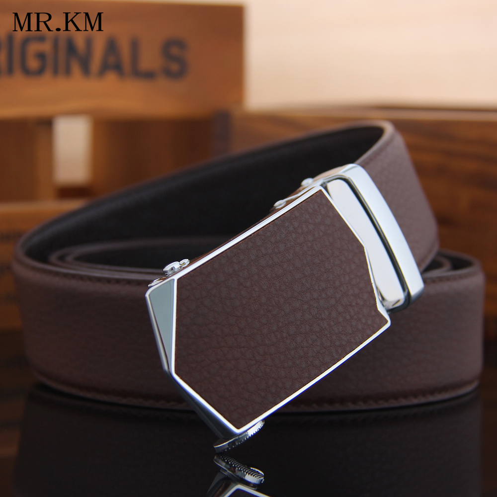 MR KM fashionable and handsome low-key leather decoration automatic buckle belt men's lychee grain cowhide belt youth