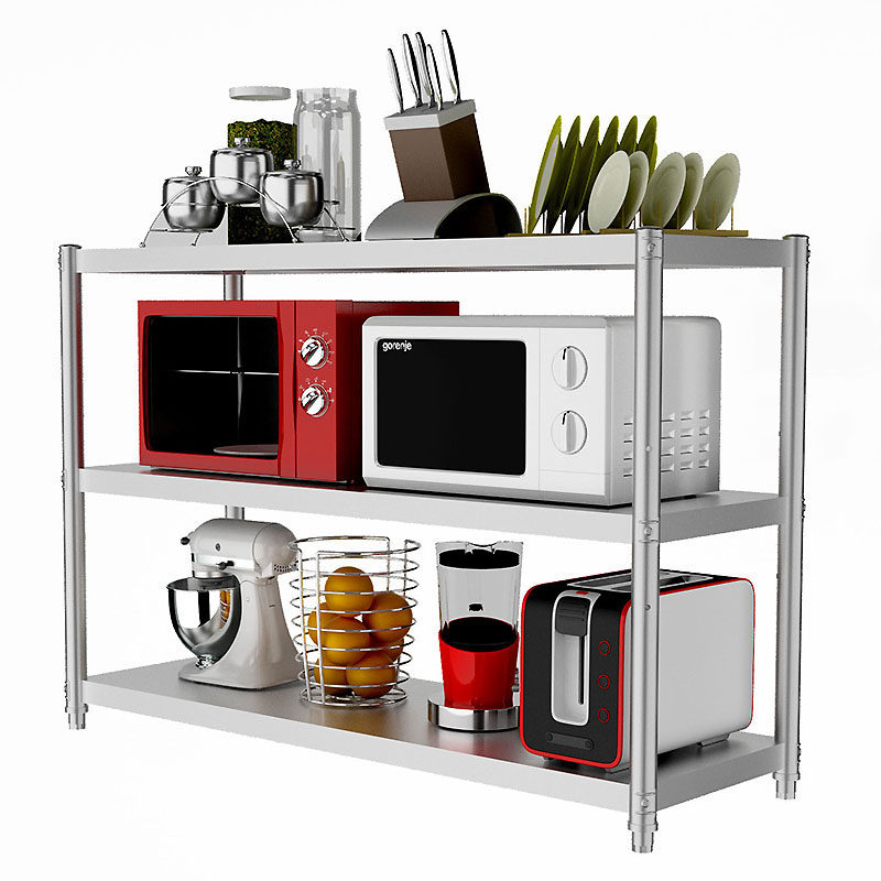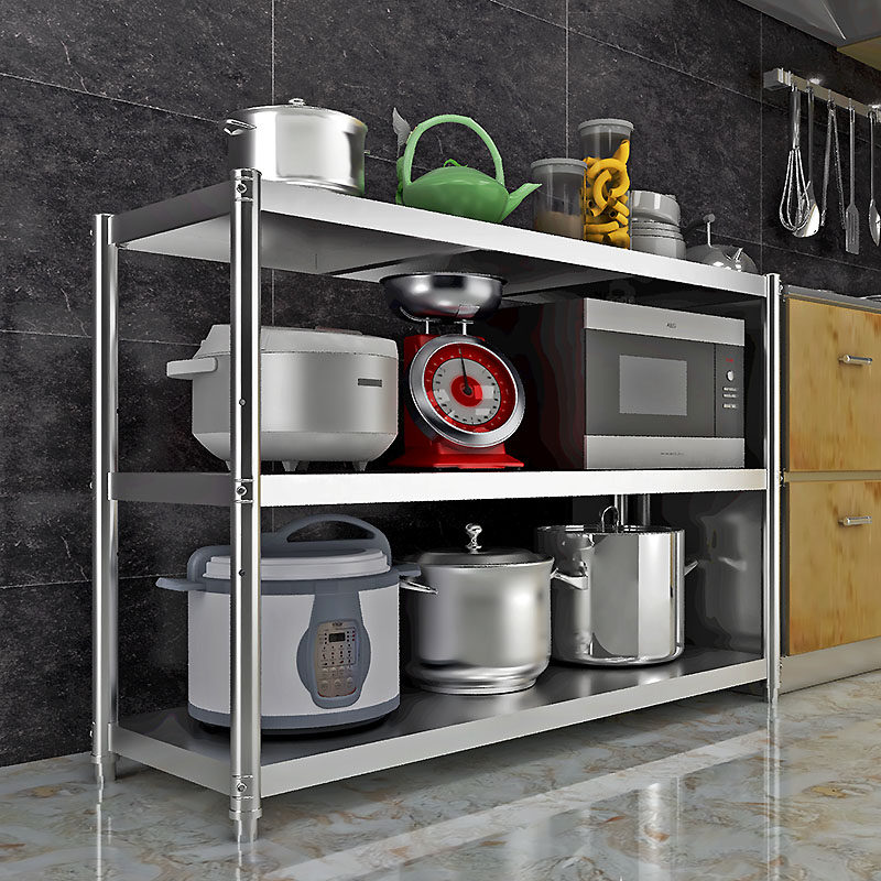 Stainless steel kitchen shelf Floor 3 multi-layer pot shelf 4 microwave oven storage shelf shelf Household shelf