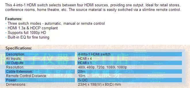 Taiwan Databay Four-in-One HDMI switcher SW-H00401-H HDMI 4 Way Switch