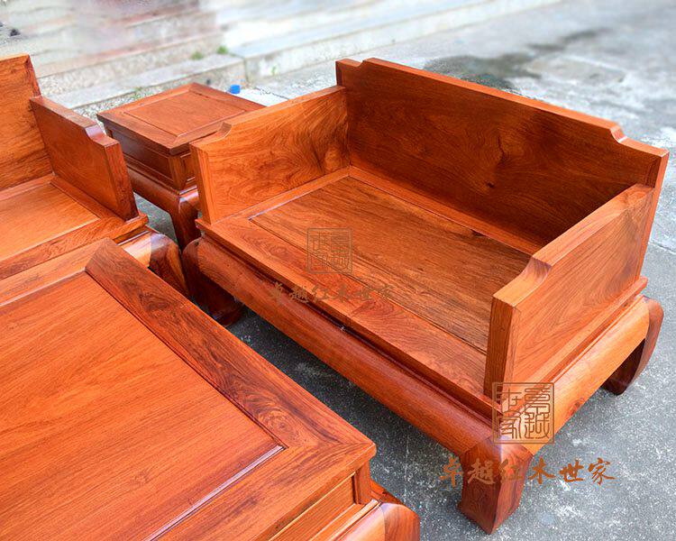 Myanmar Flowers Pears Wood Rohan Light Board Sofa Tea Table Six Pieces Living Room Complete wood Imitation Ancient Sofa Group