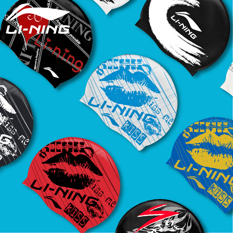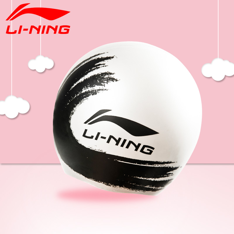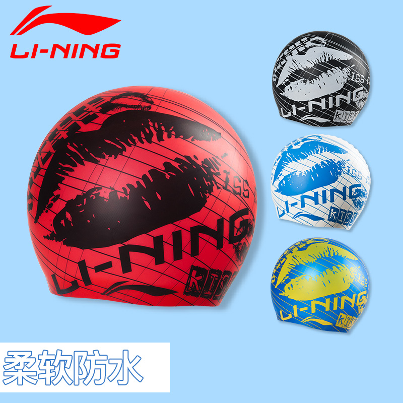 Li Ning swimming cap men's and women's long hair waterproof ear protection men's swimming cap does not take head silicone printing swimming hat adult