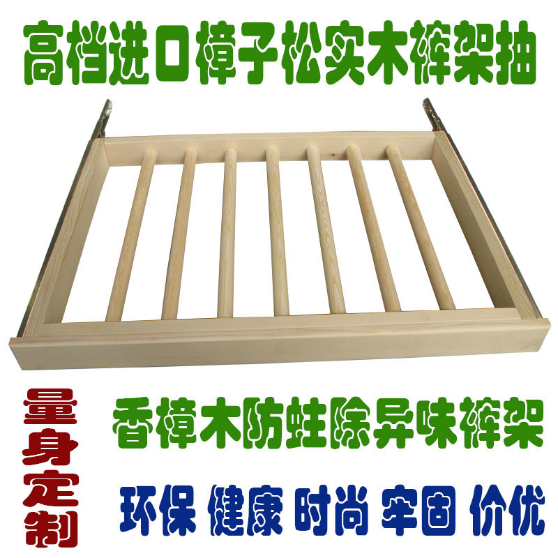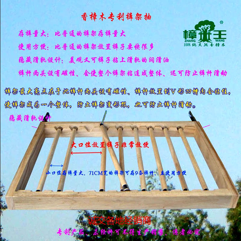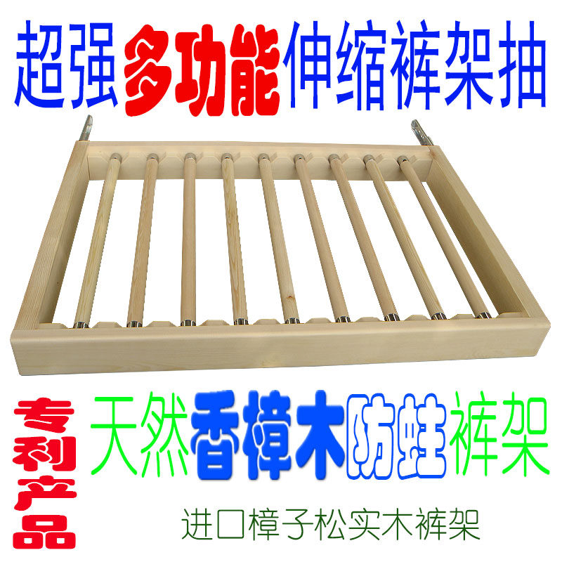 Camphor wood pants rack drawer wardrobe hanging rod Pants rack rod solid wood telescopic hanging pants checkered wood?Car clip