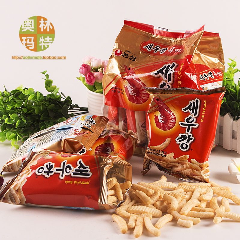 Korea Imports Zero Food Farm Hearts Fresh Shrimp Strips Original Taste 30g * 4 small packets of puffed casual snacks