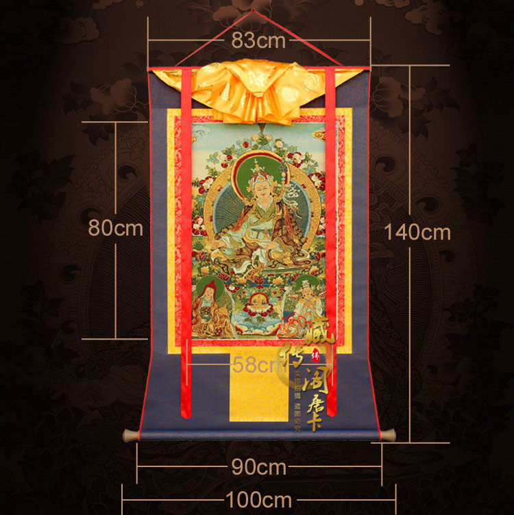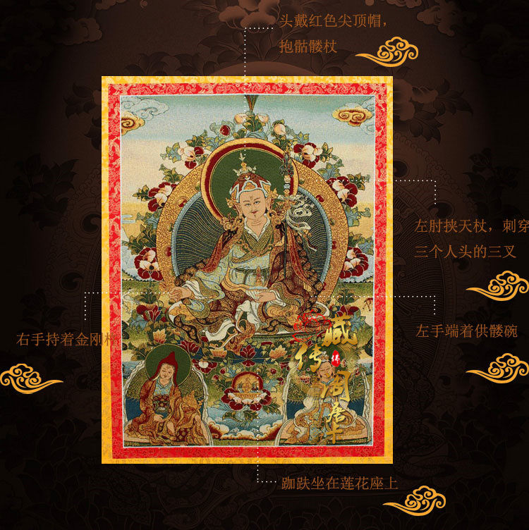 Three Thangkas of the Lotus Master Lotus Sheng Da Shi hanging painting Tibetan hand-painted embroidery Town house decoration Chishong Dezan silent protection