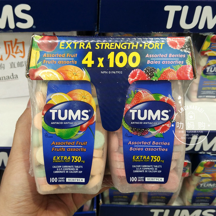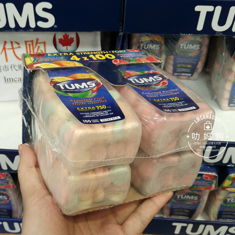 Canada TUMS anti-gastric acid pregnant woman adult chewing calcium tablet mixed fruit taste tonic calcium 100 grain