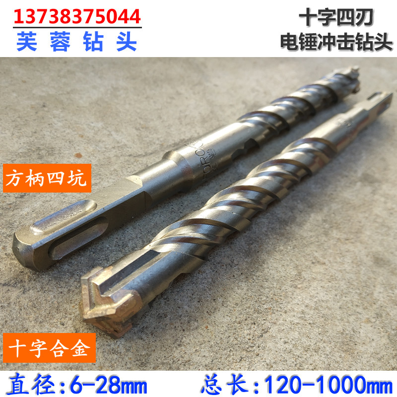 Square head cross four-edged impact drill 12-80 cm long non-standard 17 19 23 24 square handle four-pit electric hammer drill