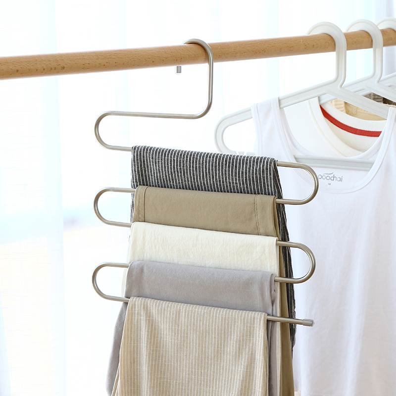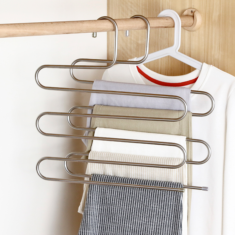 Stainless steel multi-function pants rack storage pants hanger Wardrobe non-slip pants rack clip S-type magic multi-layer pants rack