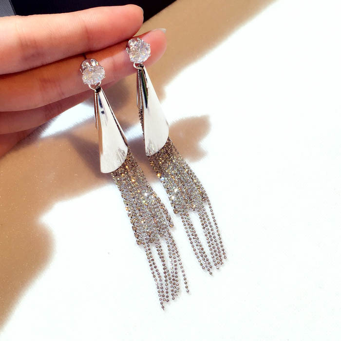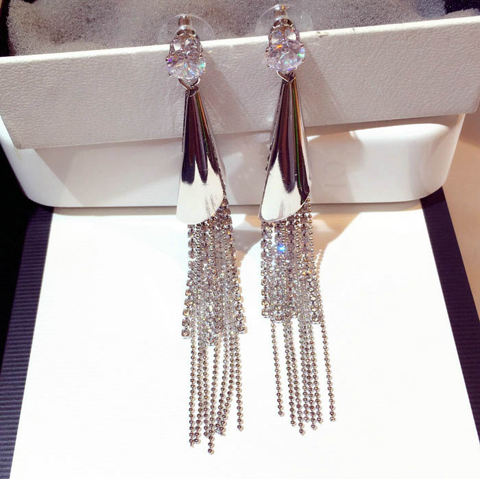European and American fashion personality earrings female Japanese Korean temperament long version earrings exaggerated hipster diamonds all-match tassel ear needles