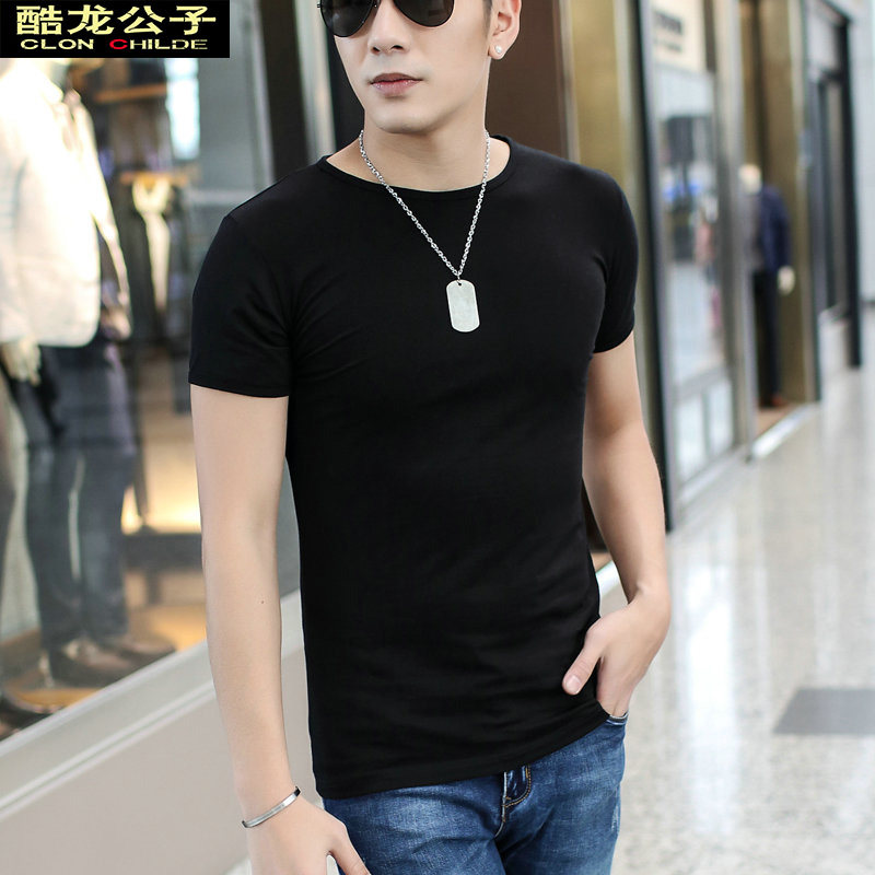 2021 Summer ice silk T-shirt male short sleeve men's body round neck half sleeve leka cotton beat undershirt pure color tight T-shirt