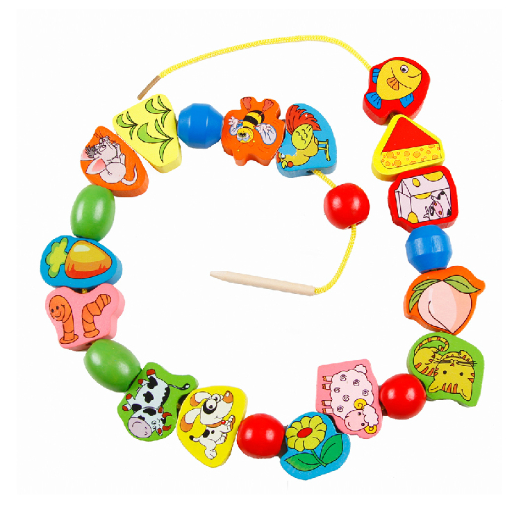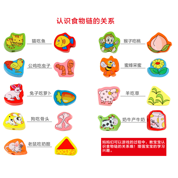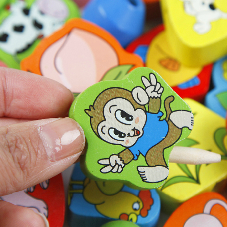 Early education teaching aids kindergarten children's wooden puzzle toy animal pairing threaded animal beads