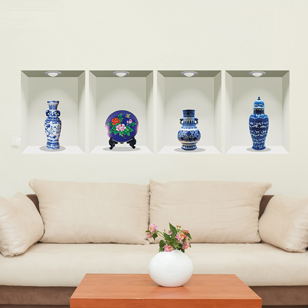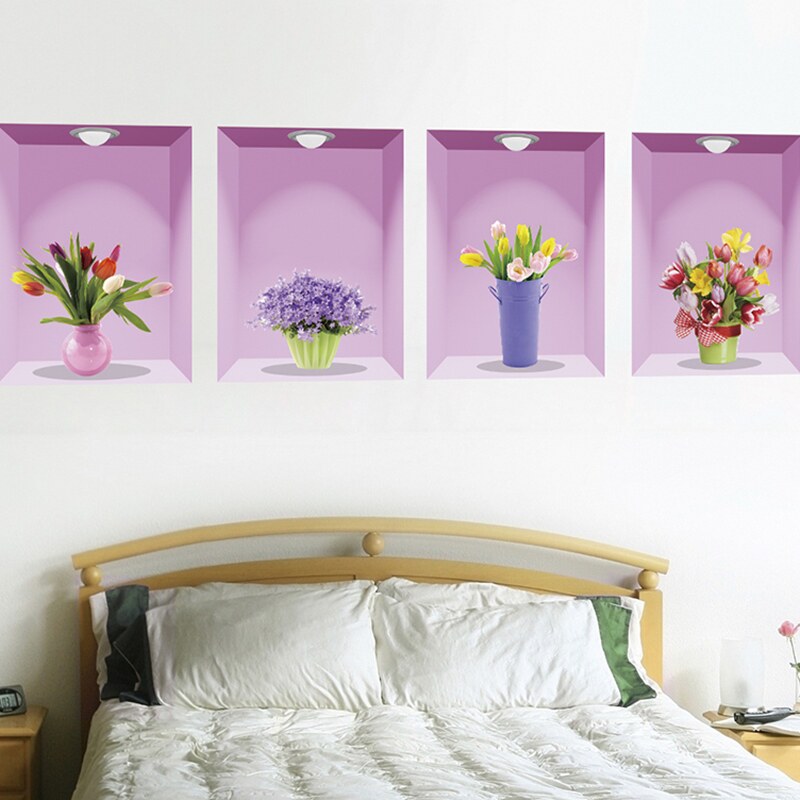 Simulation vase 3d three-dimensional wall stickers bedroom bedside stickers warm dining room living room sofa background wall decorations