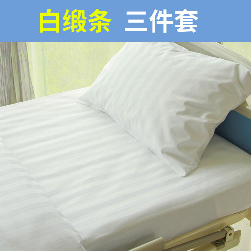 Printed fabric three-piece set Blue plaid blue satin strip White satin strip Pink satin strip Pink white strip Green white strip Blue and white strip pillowcase Bed sheet quilt cover Custom size