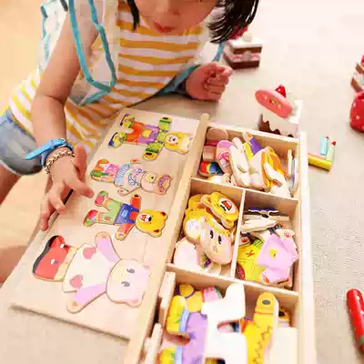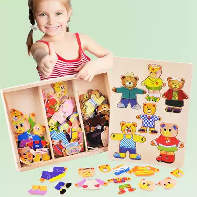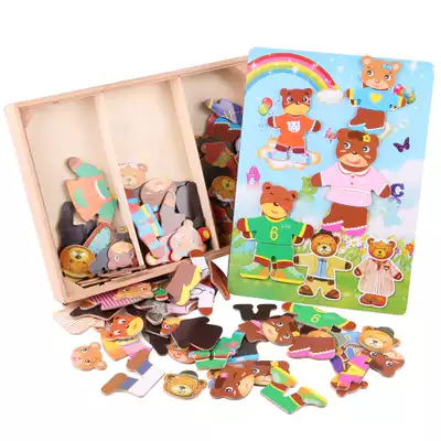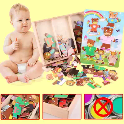 Baby early education educational toy wooden magnetic six Bear change puzzle 1-3-6 years old Enlightenment early education