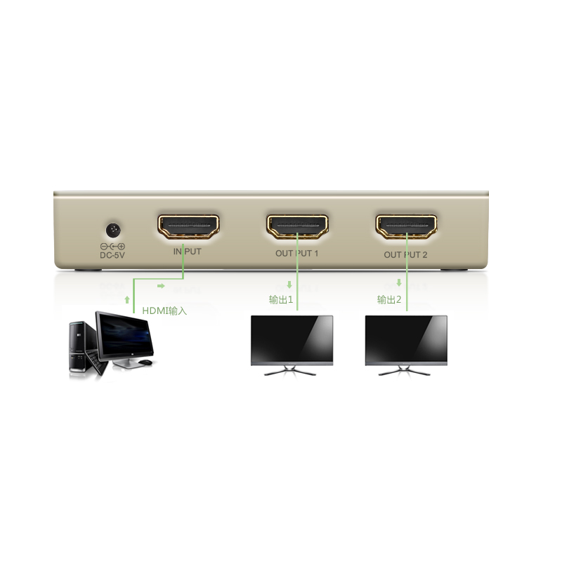 Green League hdmi dispenser 1 in 2 out of 4Kx2K high-definition split screen with 3D film display 10%-2 divider