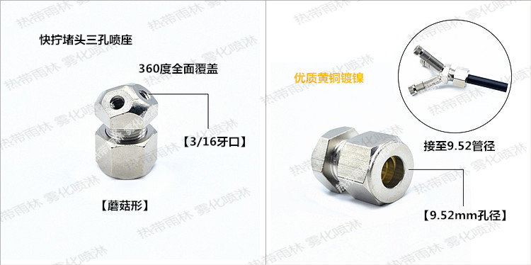3 16 threads One Thread Three - hole nozzle spray cooling 360 degrees covered by the Mist Nozzle