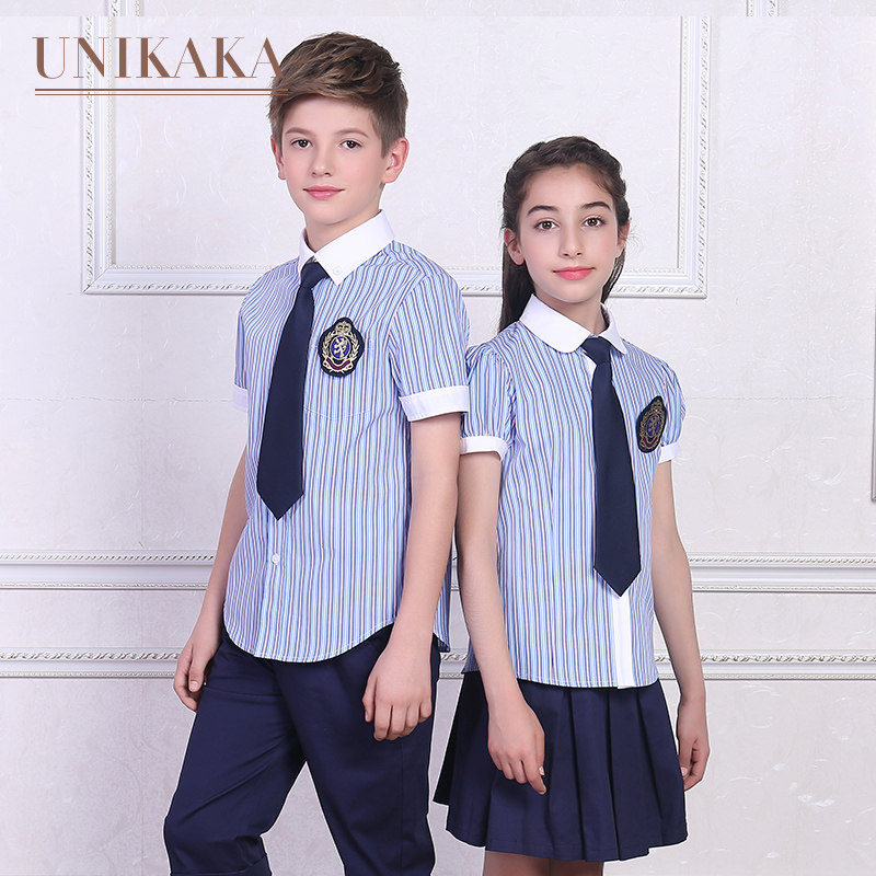 Kindergarten garden suit Summer dress Short sleeve British style Garden suit School uniform suit Primary school class suit summer shirt Graduation photo
