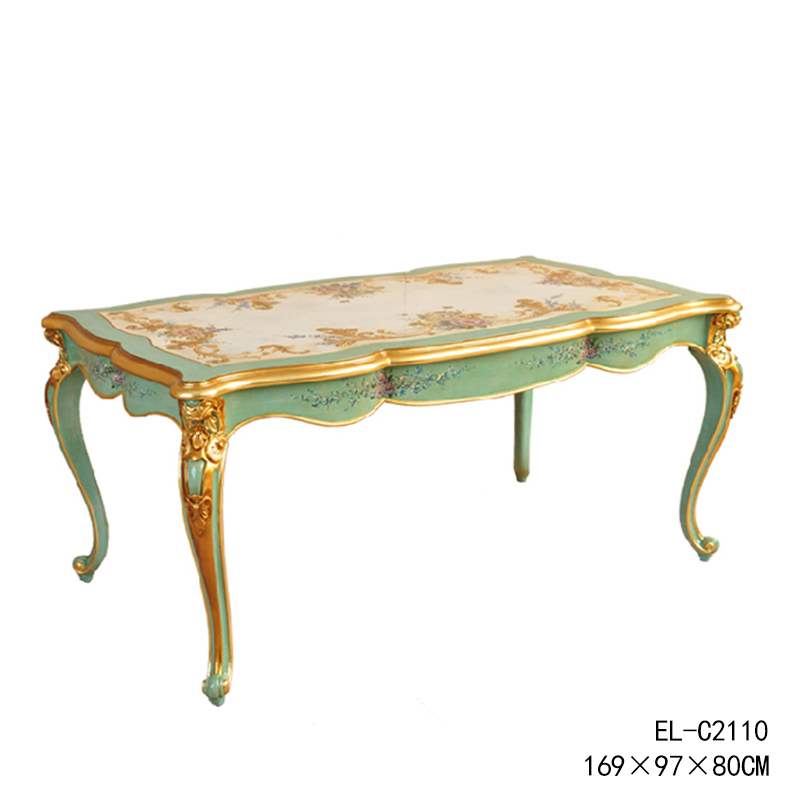Delicate Loh Cocoa Green Square Large Table Solid Wood Hand-painted Engraved gold foil 1 7 m French style Villa Dining Chair