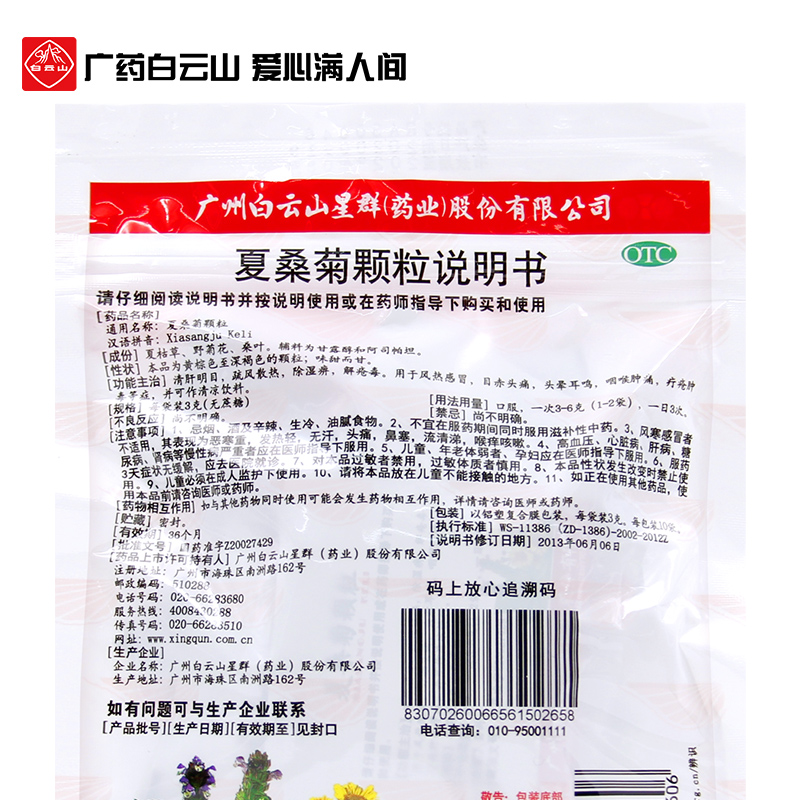 Baiyun Mountain Xingqun Xia mulberry chrysanthemum granules sucrose-free 3g*10 bags Clear liver and clear eyes dispel wind heat wind heat cold