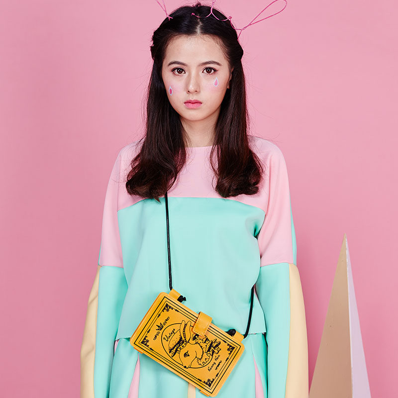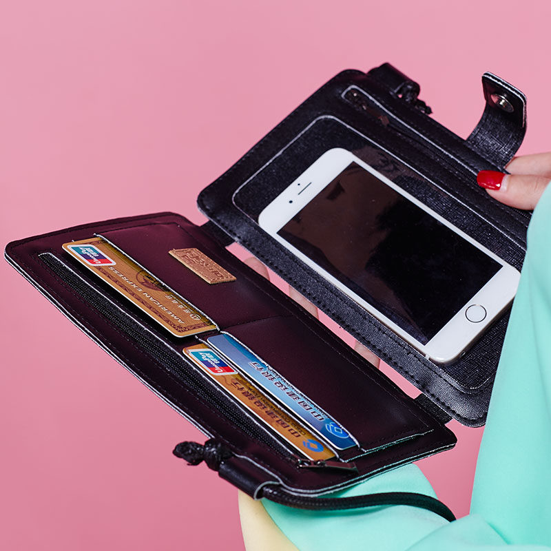 Korean version of the new Bang flower village PU printing new banknote youth card cartoon animation money mobile phone bag touch screen