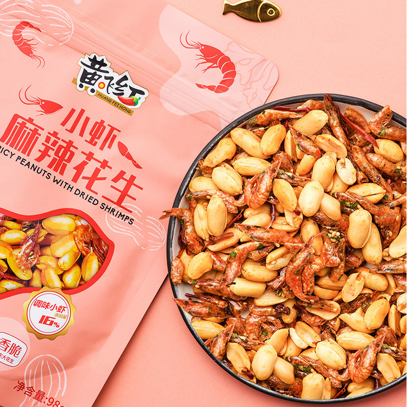 Shandong Special Products Yellow Flying Red Shrimps Peanut 98g Yellow Fly Spicy Little Shrimp Casual Snacks New Pint Listing-Taobao