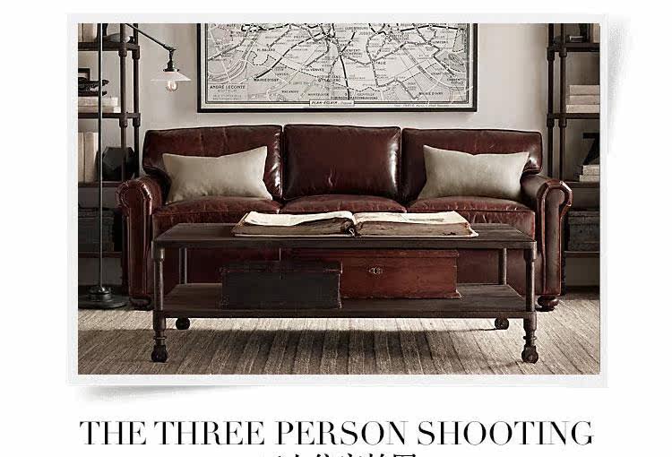 Retro Pastoral Leather Sofa American Country Nordic Oil Wax Surface Single Double Triple Combined Sofa