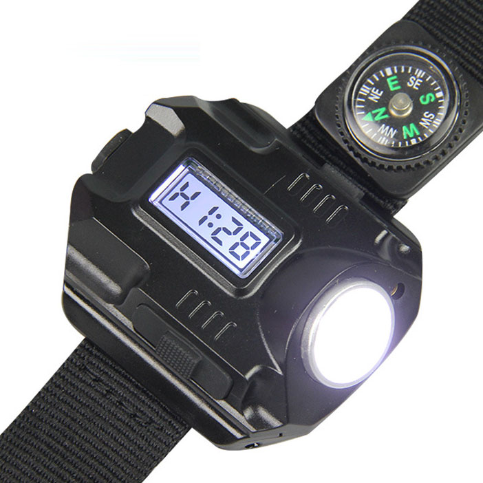 Outdoor Intense Light Flashlight Wrist Light Night Riding Fishing Light With Watches Function Charging Wrist Wear Light Mountaineering Night Run